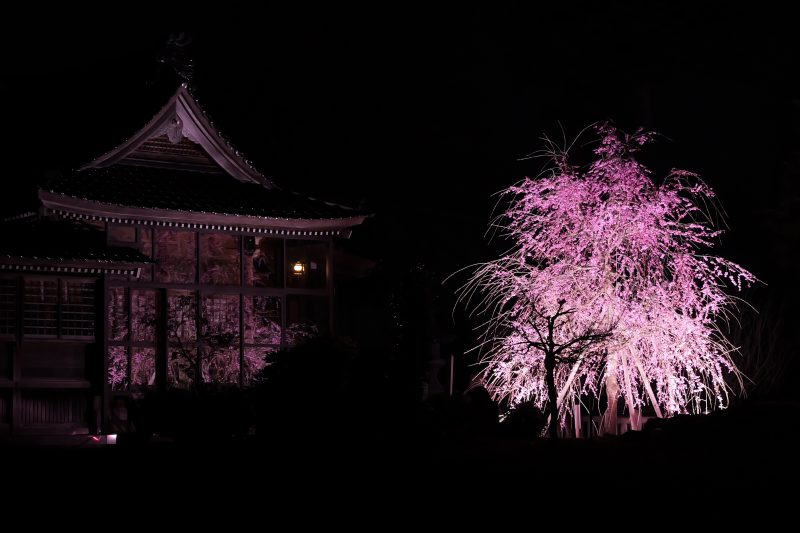 4月11日(土)には「柴田屋日吉社さくら結びプレイベント」を予定していますが、そこまで桜が散らないことを願って、毎日点 灯いたします。